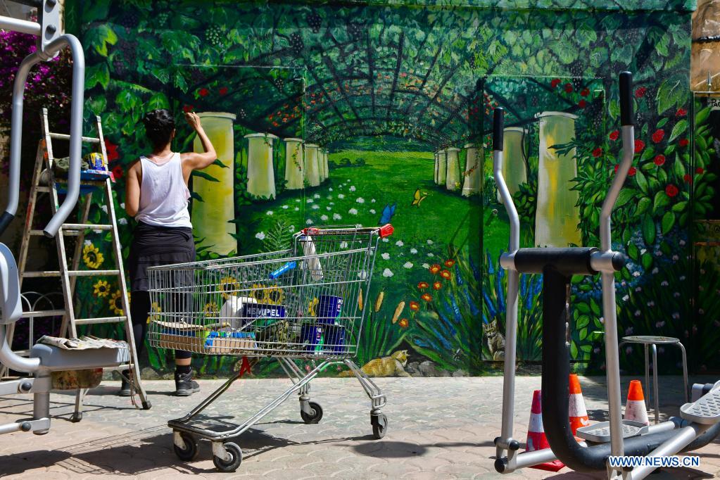 Artist Nathalie Micallef adds the finishing touches to a mural at the Peace Garden in Gharghur, Malta, June 3, 2021. Micallef has spent all her free time since January turning blank walls here into vibrant visuals. (Photo by Jonathan Borg/Xinhua)