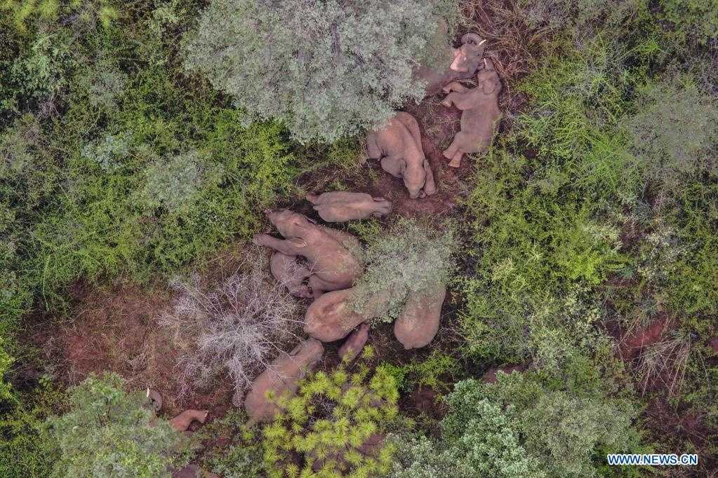 KUNMING, June 11 (Xinhua) -- The wandering wild Asian elephant herd that has caught global attention has headed 8.12 km further southwest in Shijie Township in the city of Yuxi, southwest China's Yunnan Province.