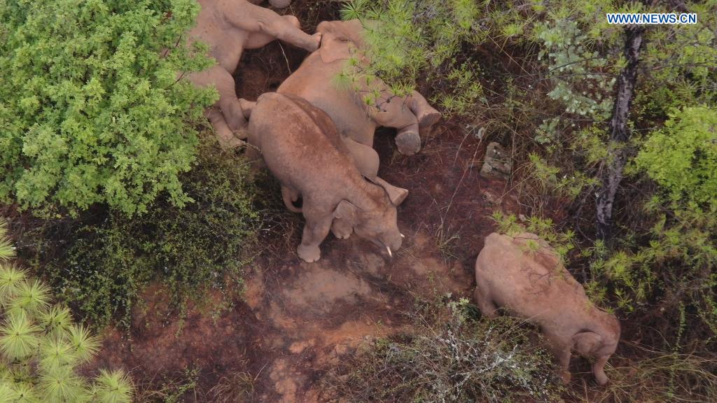 KUNMING, June 12 (Xinhua) -- The wandering herd of wild Asian elephants that has caught global attention is lingering in the Shijie Township in the city of Yuxi, southwest China's Yunnan Province, authorities said Saturday.