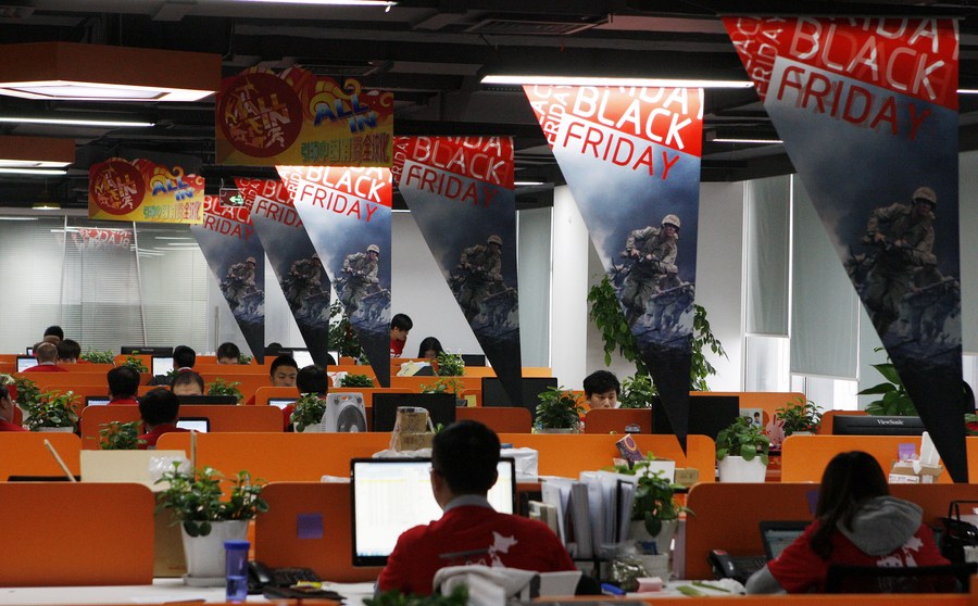 File photo taken on Nov. 16, 2015 shows posters of U.S. "Black Friday", a day that Americans go shopping after celebrating Thanksgiving Day, at the office of a cross-border e-commerce platform in Shanghai, east China. (Xinhua/Fang Zhe)