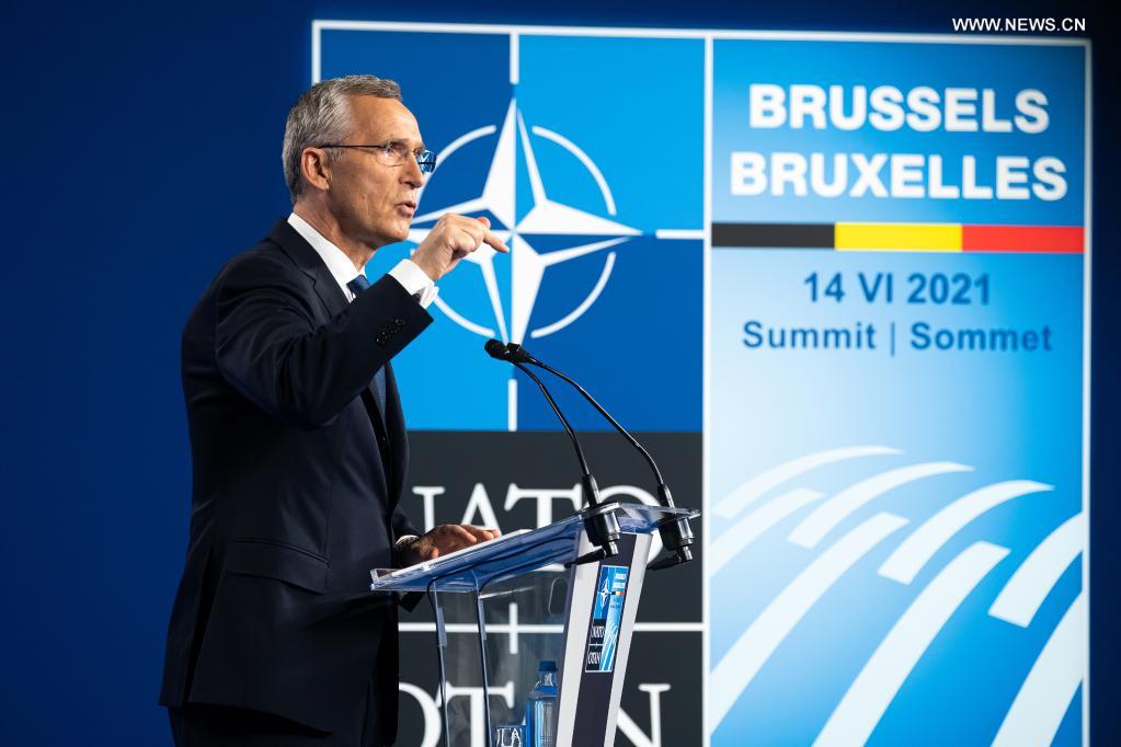 NATO Secretary General Jens Stoltenberg attends a press conference following a NATO summit at NATO headquarters in Brussels, Belgium, on June 14, 2021. Leaders of the North Atlantic Treaty Organization (NATO) held a face-to-face summit on Monday to show their unity and agreed on the "NATO 2030" agenda to address future challenges. (NATO/Handout via Xinhua)