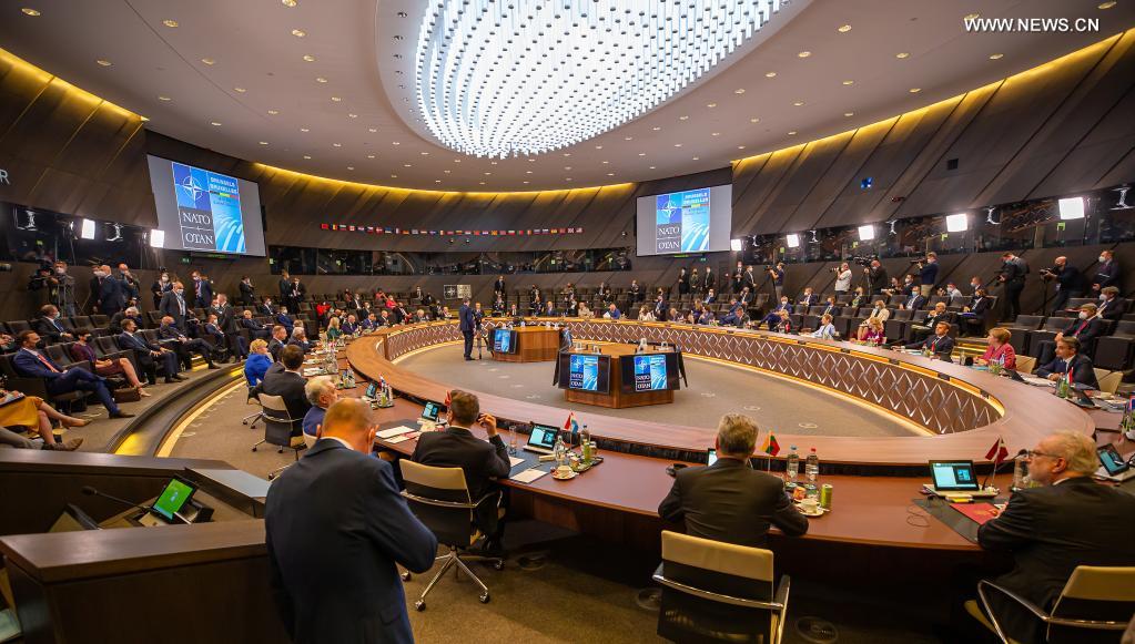 Leaders of the North Atlantic Treaty Organization (NATO) attend a NATO summit at NATO headquarters in Brussels, Belgium, on June 14, 2021. Leaders of the North Atlantic Treaty Organization (NATO) held a face-to-face summit on Monday to show their unity and agreed on the "NATO 2030" agenda to address future challenges. (NATO/Handout via Xinhua)