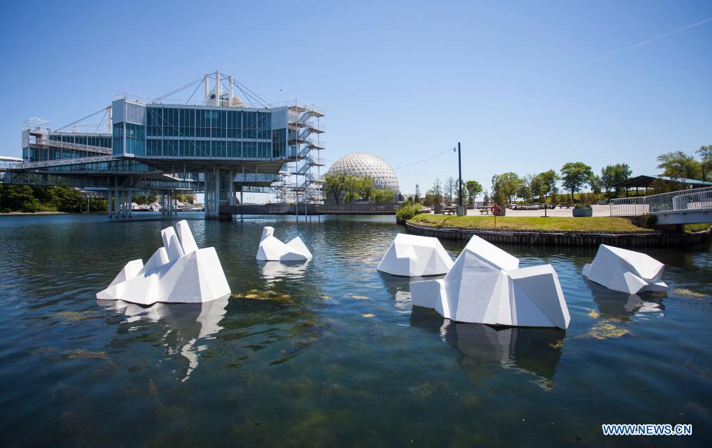 The art installation Over Floe is seen at Ontario Place in Toronto, Canada, on June 15, 2021. Made of some waste construction materials by artist John Notten, the public art project Over Floe aims to illustrate the harm of human-caused global warming as ice sheets melt and oceans expand, threatening the way of life around the shorelines of the world. (Photo by Zou Zheng/Xinhua)
