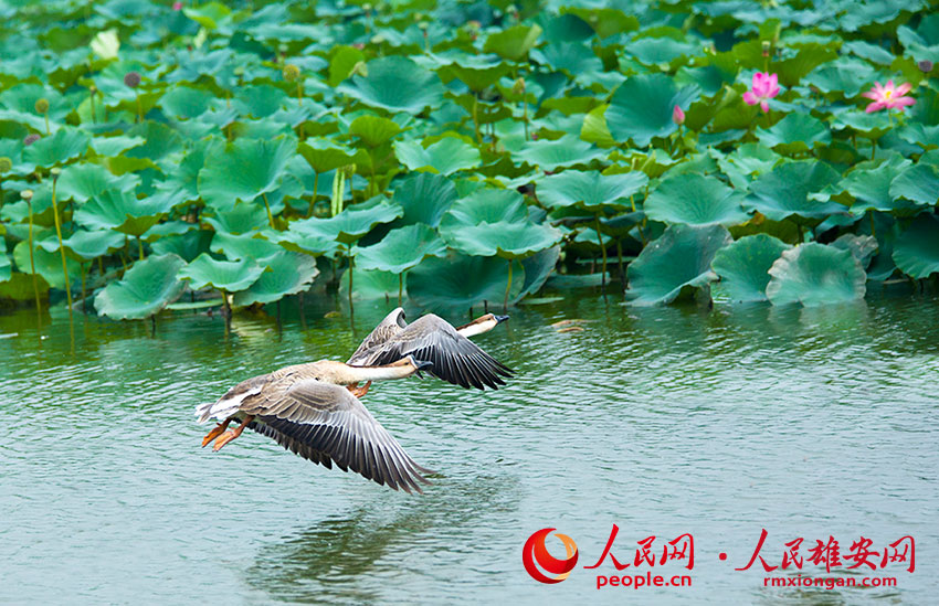 The Baiyangdian scenic spot in the Xiong'an New Area, north China's Hebei Province, started its trial operation on Tuesday after being upgraded. Listed as one of China's top-level tourist attractions, Baiyangdian is home to various wildlife species, including over 200 kinds of birds and more than 40 kinds of fish. (Photo provided by Baiyangdian Scenic Spot)