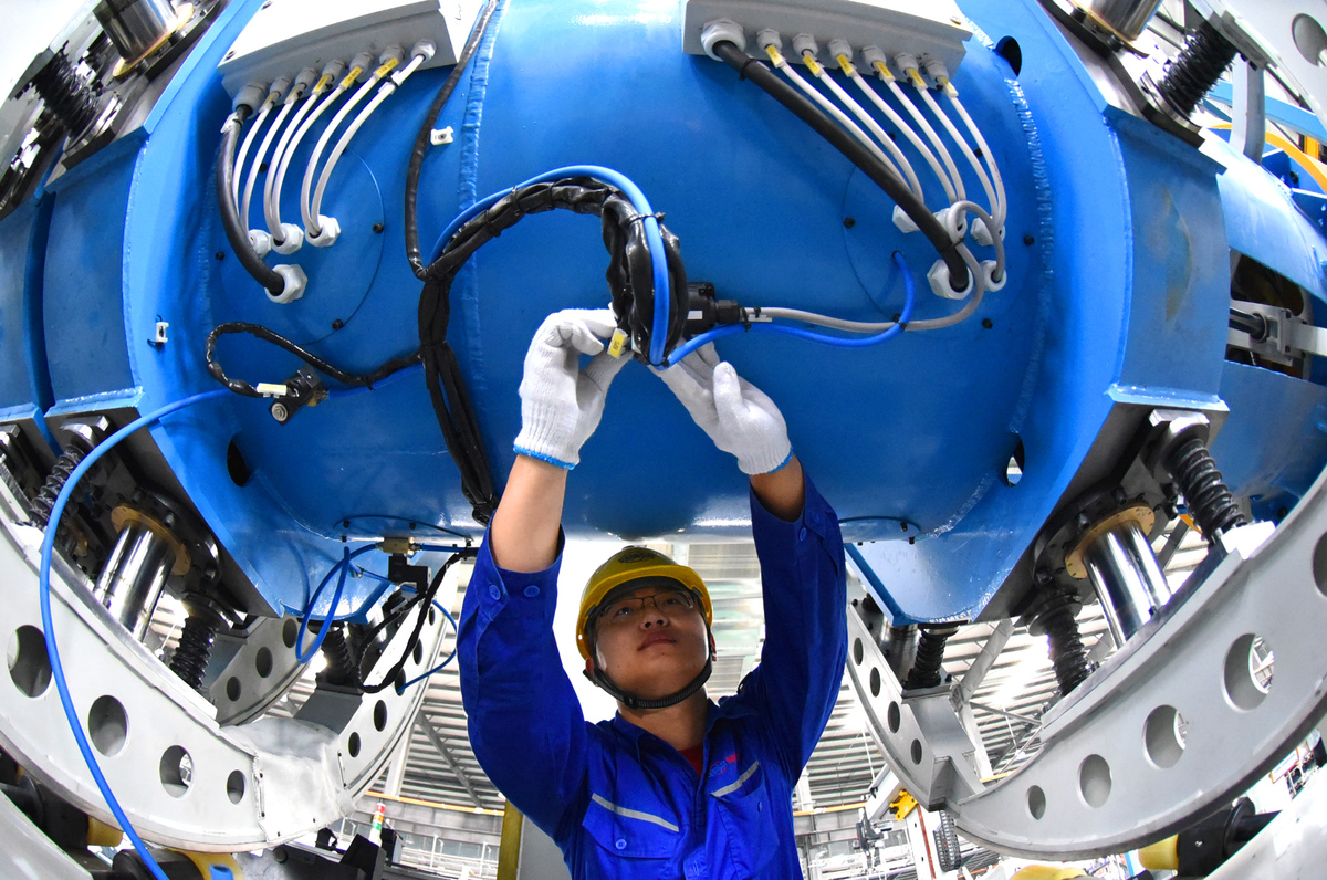 A technician works on the production line of LNG containers at a plant in Lianyungang, Jiangsu province. GENG YUHE/FOR CHINA DAILY