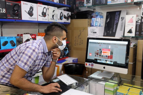 An Iraqi young man searches Chinese online shopping sites for goods he can import from China to sell to customers in Baghdad, Iraq, on May 26, 2021. (Xinhua / Khalil Dawood)