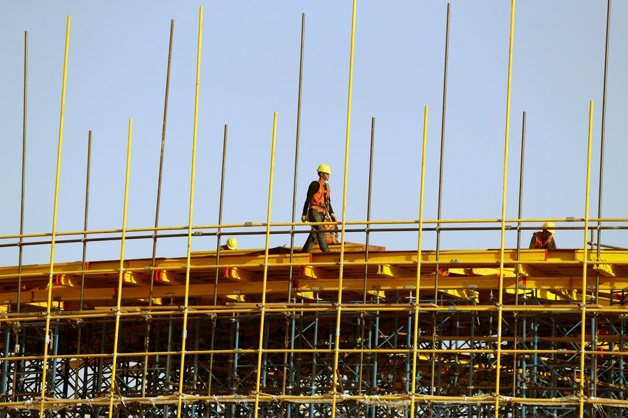 People work on the construction site of China State Construction Engineering Corporation (CSCEC)'s Central Business District (CBD) project in Egypt's New Administrative Capital, about 50 kilometers east of Cairo, on June 1, 2019. (Xinhua/Ahmed Gomaa)