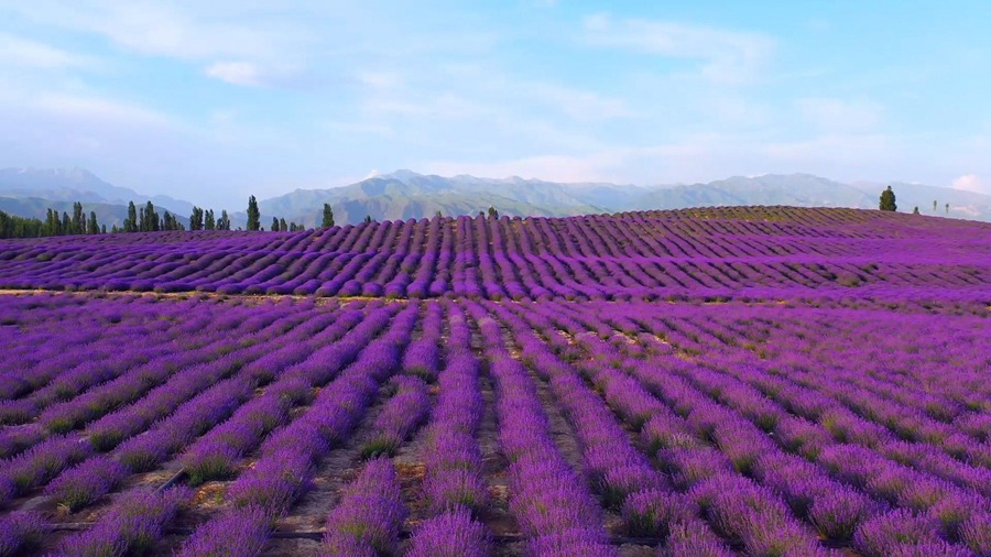 Lavenders bloom in the Ili River valley in Huocheng county, Ili Kazakh autonomous prefecture, northwest China's Xinjiang Uyghur Autonomous Region. (Photo/Courtesy of the media convergence center of Huocheng county)