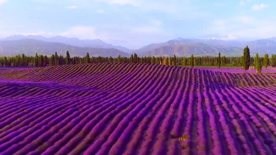 Lavenders bloom in the Ili River valley in Huocheng county, Ili Kazakh autonomous prefecture, northwest China's Xinjiang Uyghur Autonomous Region. (Photo/Courtesy of the media convergence center of Huocheng county)