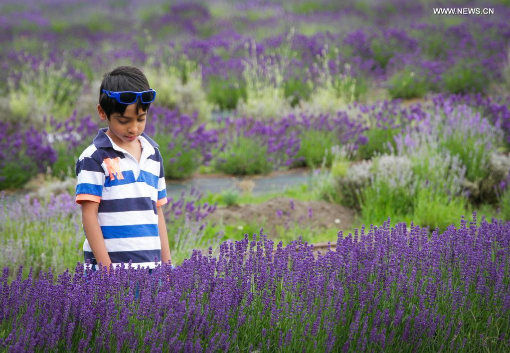A child visits a lavender farm in Richmond, British Columbia, Canada, June 19, 2021. (Photo by Liang Sen/Xinhua)