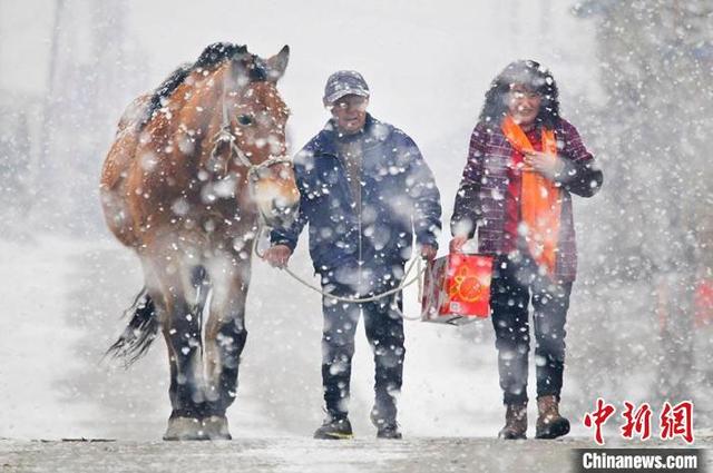 Photo by Qi Shuang, a farmer, shows two farmers on their way back home from a fair.