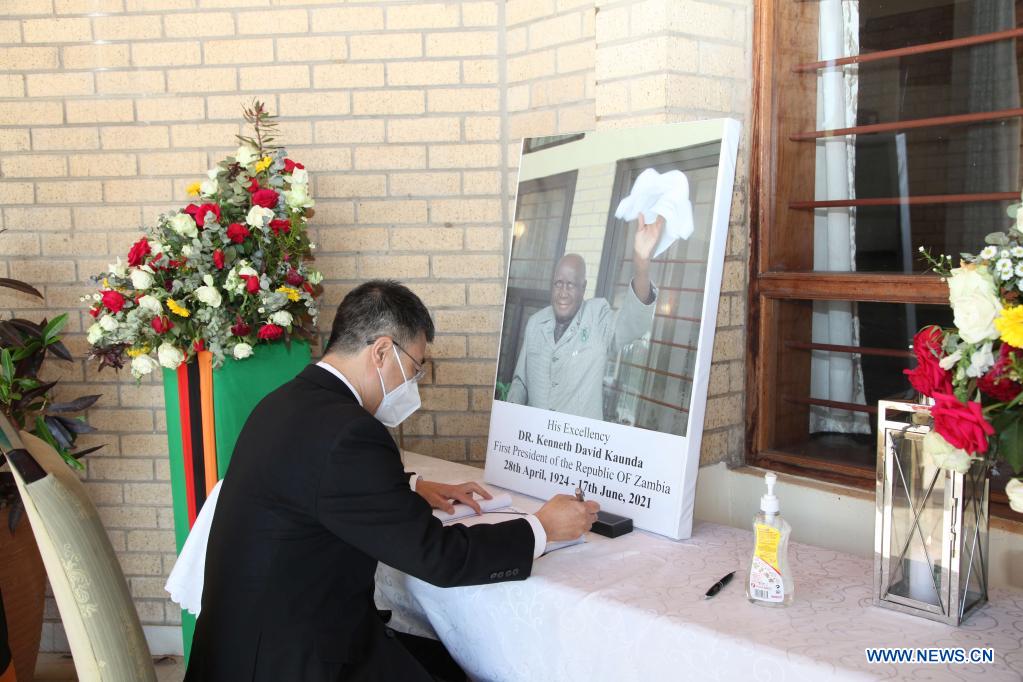 Chinese envoy visits Kaunda's funeral home, signs book of condolences (2)