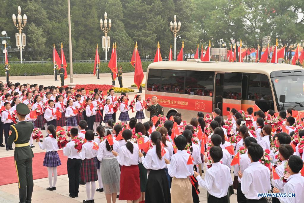 A recipient of the July 1 Medal arrives at the Great Hall of the People in Beijing, capital of China, June 29, 2021. A ceremony is about to be held Tuesday morning to award the July 1 Medal, the highest honor in the Communist Party of China (CPC), to outstanding Party members for the first time. The ceremony will be held at the Great Hall of the People in Beijing. (Xinhua/Yue Yuewei)