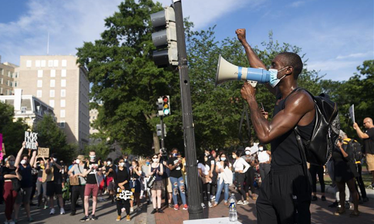 Demonstrators protest against racial injustice to mark Juneteenth, commemorating the end of slavery in the United States, near the White House in Washington, D.C., the US, June 19, 2020. Photo:Xinhua