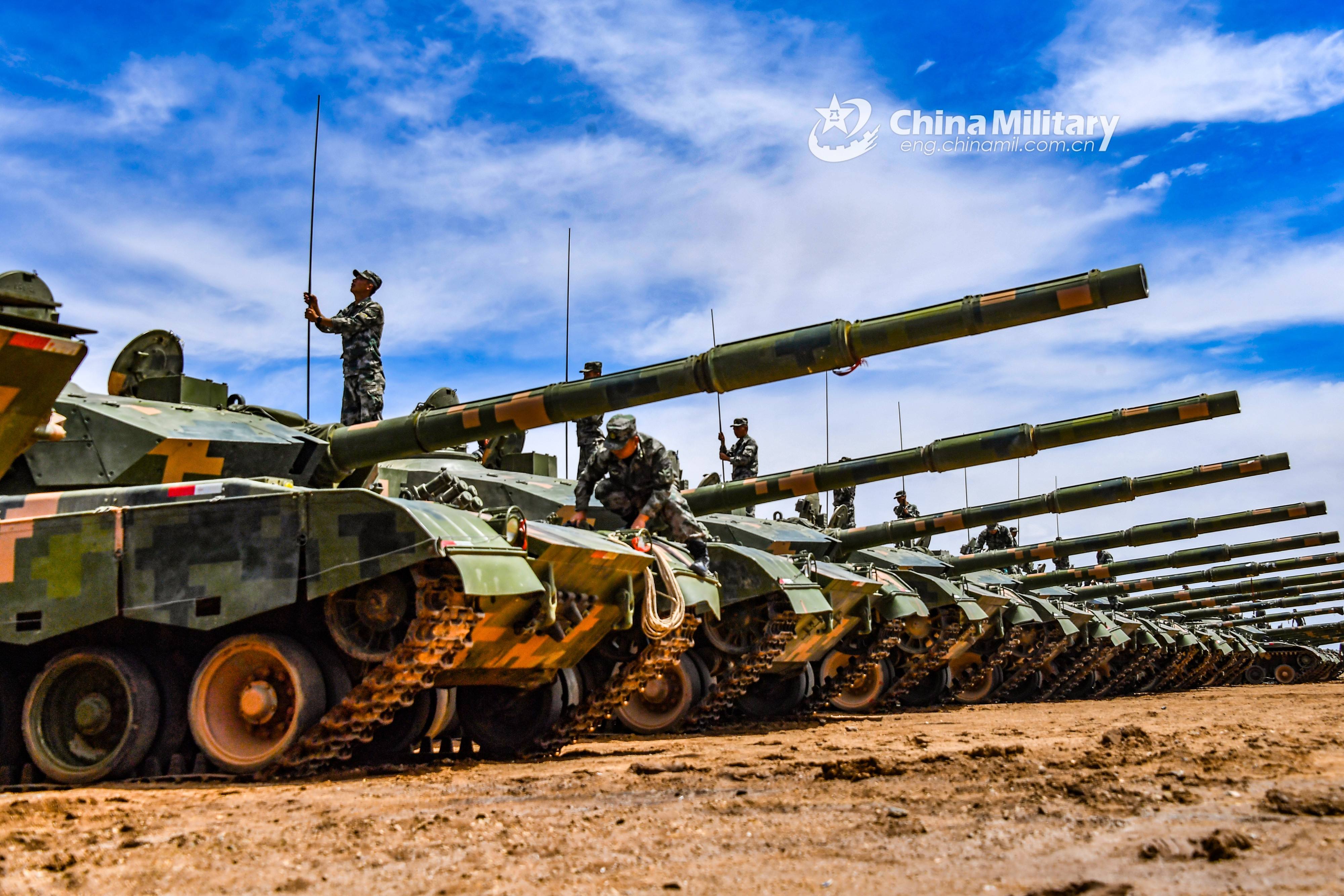 Soldiers assigned to a brigade under the PLA 73rd Group Army perform preventive maintenance on their armored vehicles on June 15, 2021, so as to ensure the vehicles in good condition at all times. (eng.chinamil.com.cn/Photo by Liu Zhiyong)