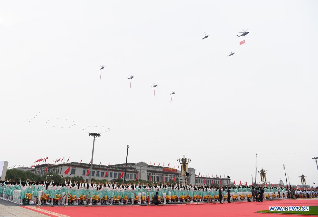 Military aircraft fly over Tian'anmen Square in echelons ahead of a grand gathering celebrating the Communist Party of China (CPC) centenary in Beijing, capital of China, July 1, 2021. (Xinhua/Zhang Ling)