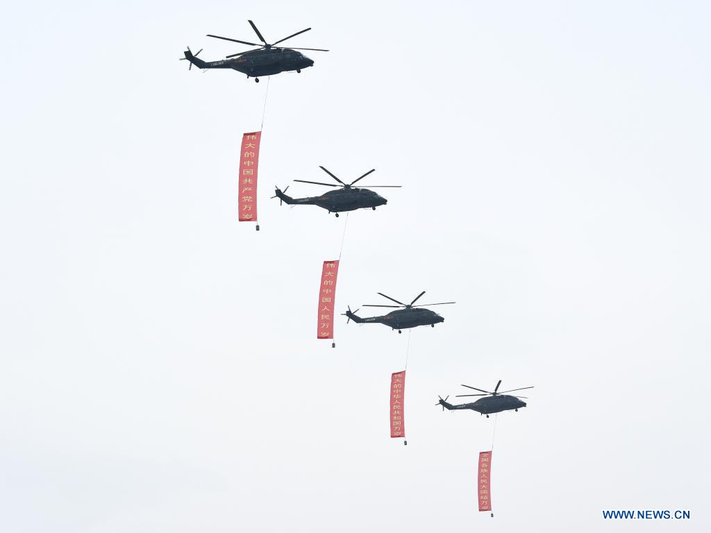 Military aircraft fly in echelon ahead of a grand gathering celebrating the Communist Party of China (CPC) centenary in Beijing, capital of China, July 1, 2021. (Xinhua/Dai Tianfang)