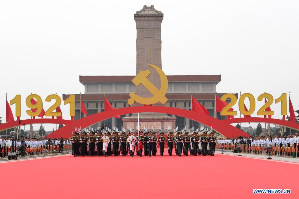 Flag-raising ceremony held at Tian'anmen Square during CPC centenary ceremony (10)