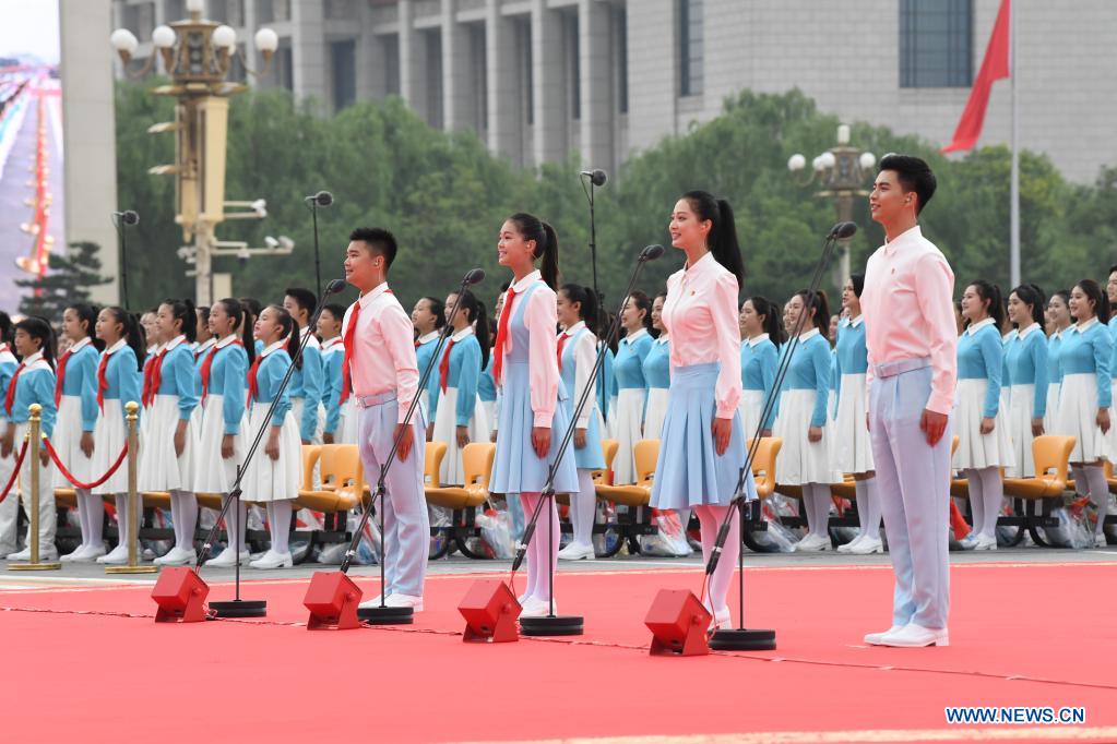 Representatives of the Chinese Communist Youth League members and Young Pioneers salute the Communist Party of China (CPC) and express commitment to the Party's cause at a ceremony marking the CPC centenary at Tian'anmen Square in Beijing, capital of China, July 1, 2021. (Xinhua/Zhai Jianlan)