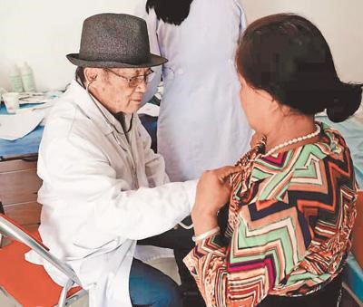 Wu Tianyi (L) has a checkup for a patient from an ethnic minority group. (File photo)