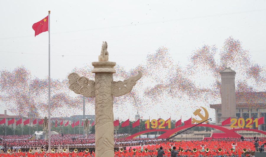 A ceremony marking the centenary of the Communist Party of China (CPC) is held at Tian'anmen Square in Beijing, capital of China, July 1, 2021. (Xinhua/Tian Dingyu)