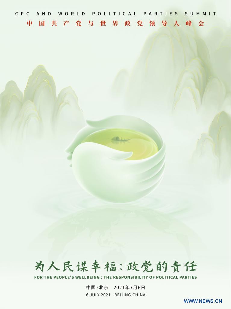This image shows a poster of the Communist Party of China (CPC) and World Political Parties Summit. (International Department of the Communist Party of China Central Committee/Handout via Xinhua)