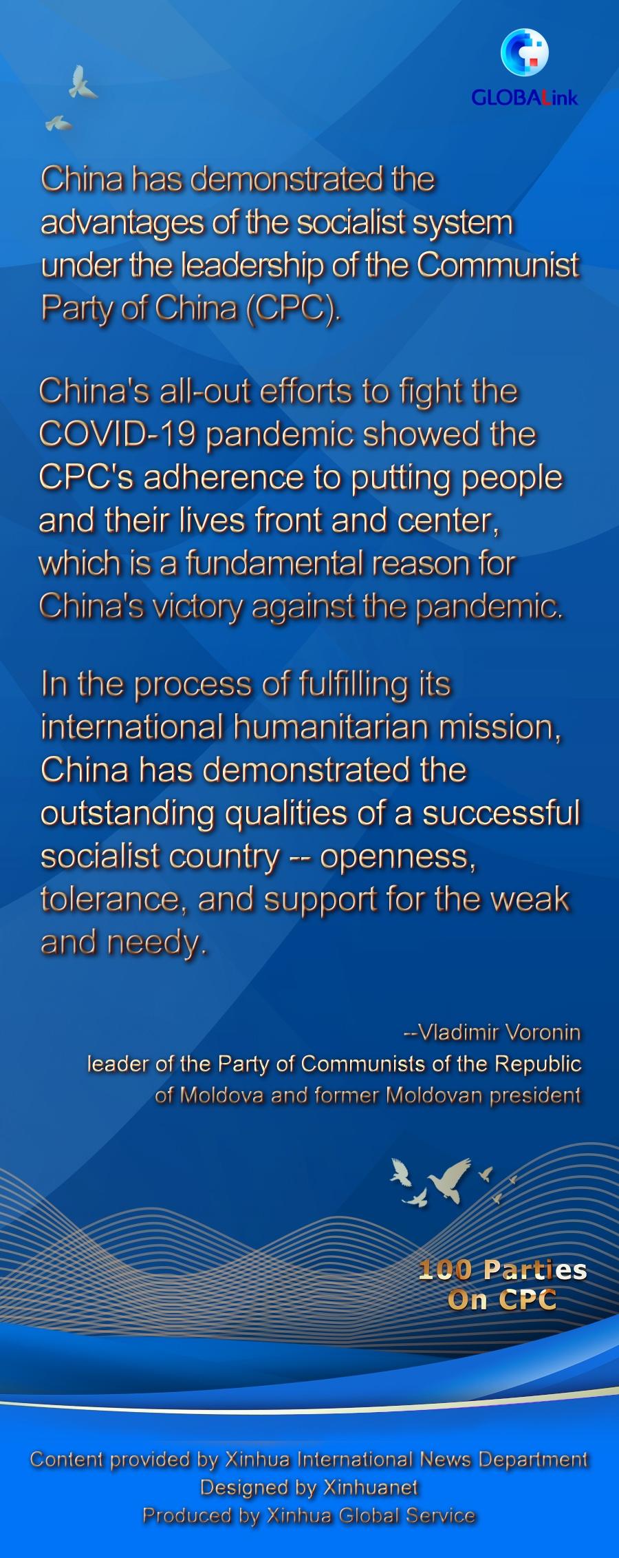 BUCHAREST, July 6 (Xinhua) -- China has demonstrated the advantages of the socialist system under the leadership of the Communist Party of China (CPC), a Moldovan politician said.