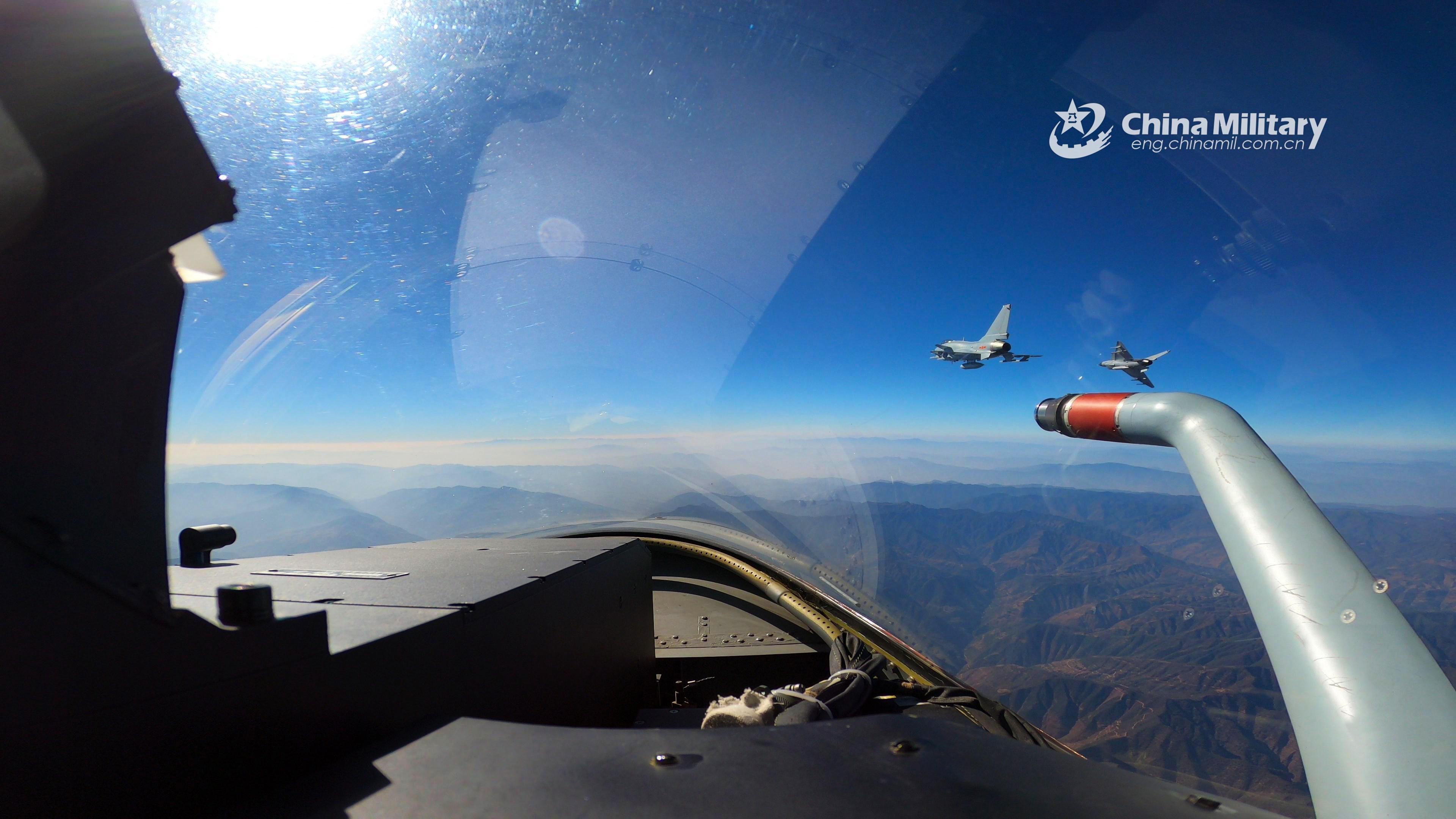 Fighter jets attached to an aviation brigade of the air force under the PLA Southern Theater Command perform formation flight at a constant speed during a recent 24-hour flight training exercise. (eng.chinamil.com.cn/Photo by Zhang Xuemin)