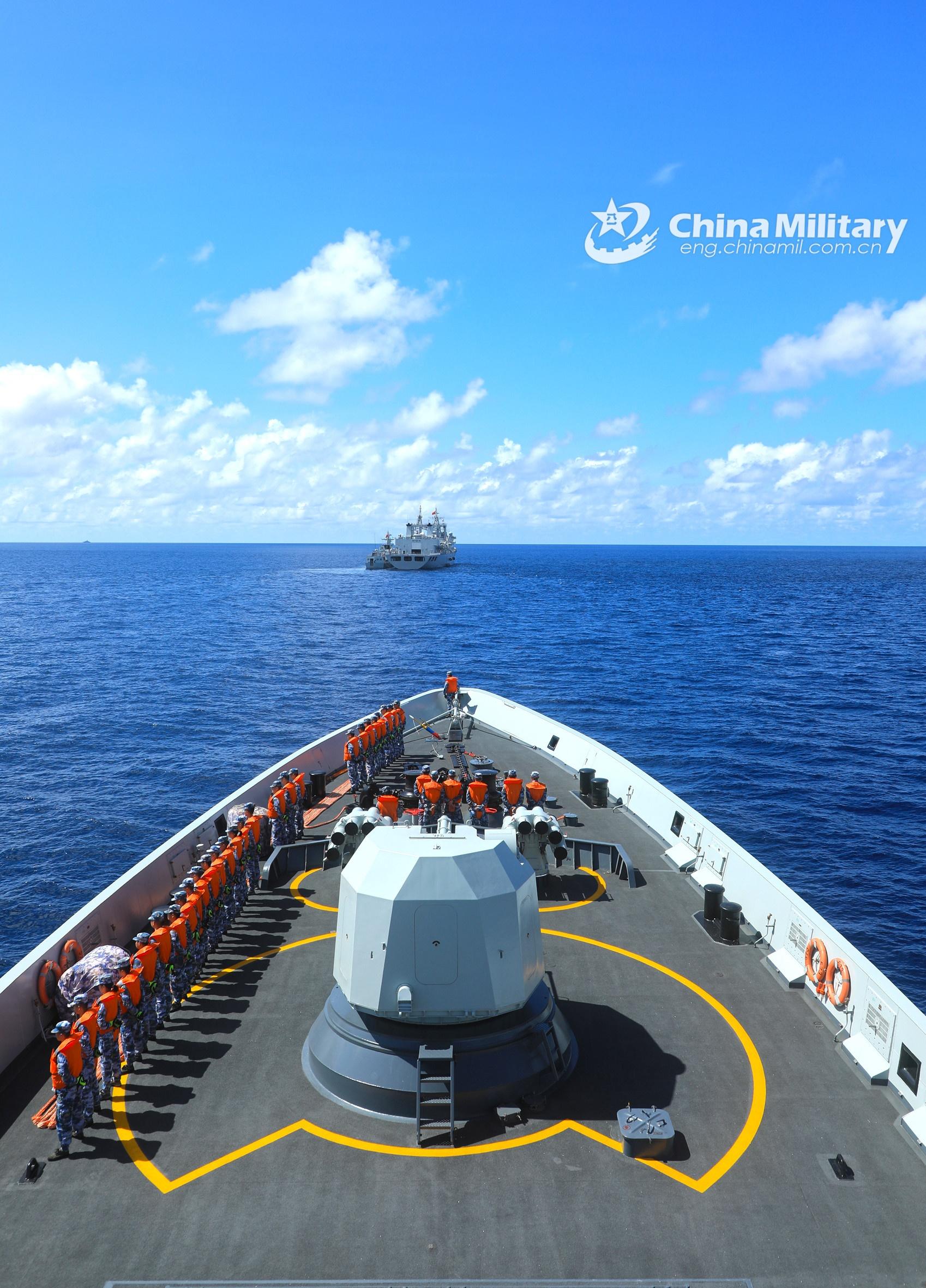 The guided-missile frigates attached to the navy under the PLA Southern Theater Command steam in formation during a recent realistic far-sea training exercise. The training exercise mainly focused on such subjects as live-fire operation, air-defense, anti-missile, and replenishment-at-sea. (eng.chinamil.com.cn/Photo by Xue Chengqing)