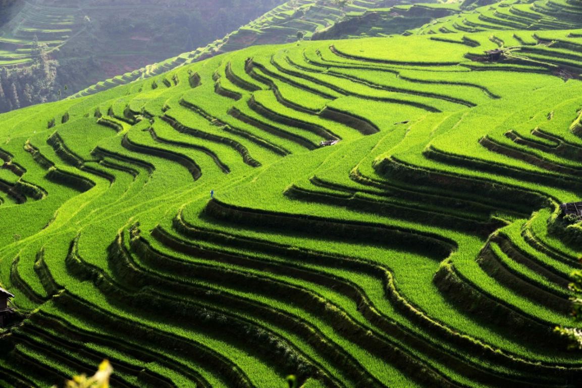 Photo taken on July 13, 2021 shows splendid terraced fields in Baishao village, Jiajiu township, Congjiang county, southwest China’s Guizhou province. (Photo by Li Changhua/People’s Daily Online)