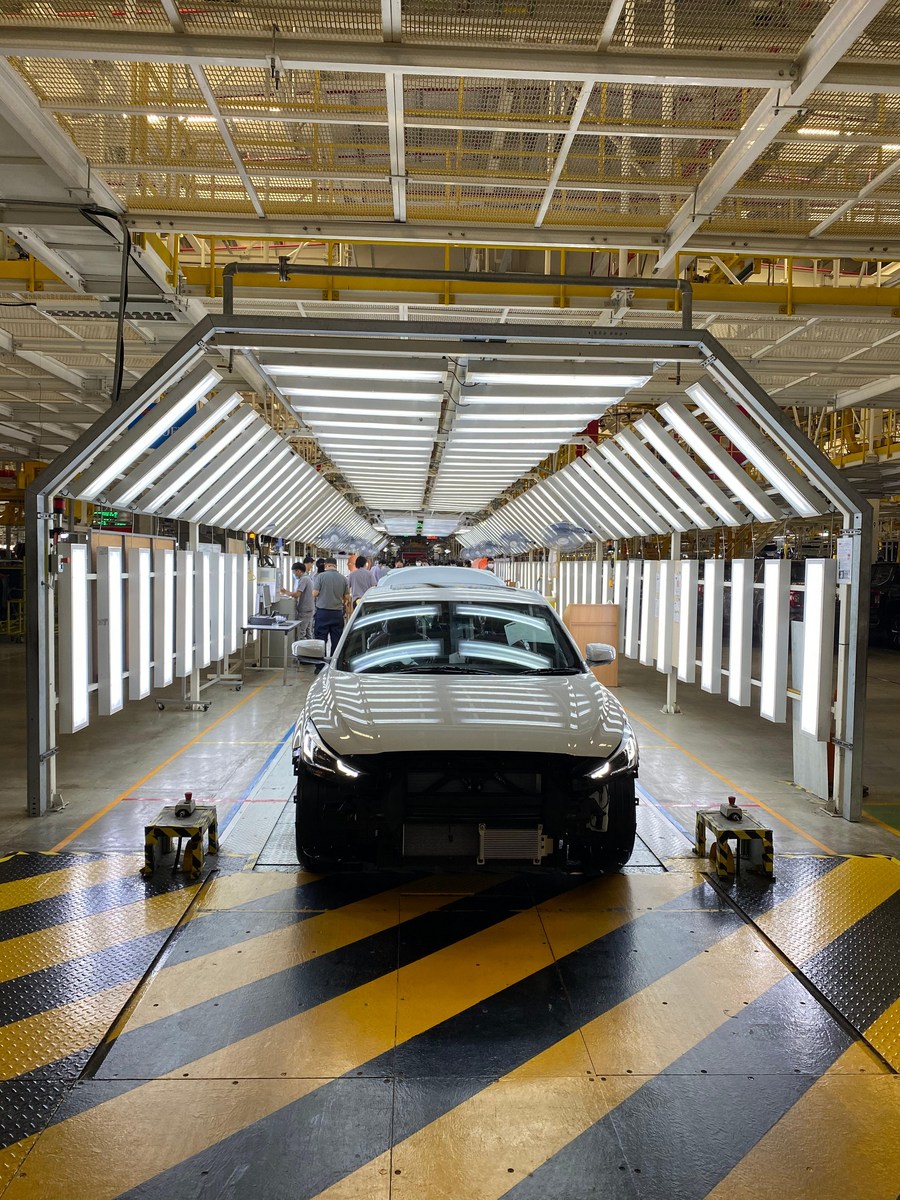 Photo taken on June 29, 2021 shows workers inspecting new cars in a factory of the SAIC Motor-CP Co., Ltd. in Chonburi province, Thailand. (Xinhua/Wang Yaguang)