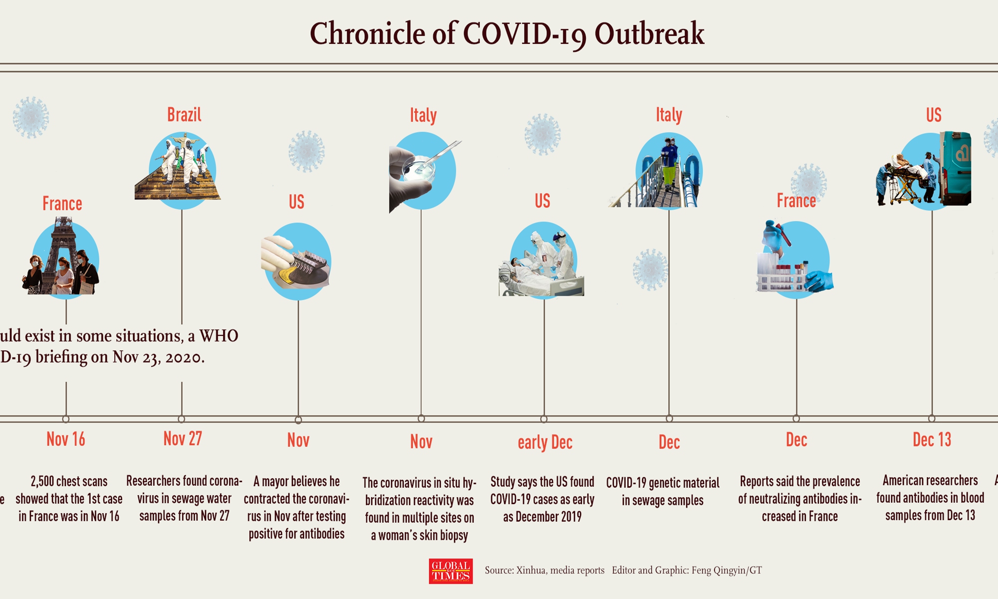 Liang told the Global Times at the media briefing that multiple studies in different countries point to the possibility that COVID-19 had surfaced before the cases previously reported.