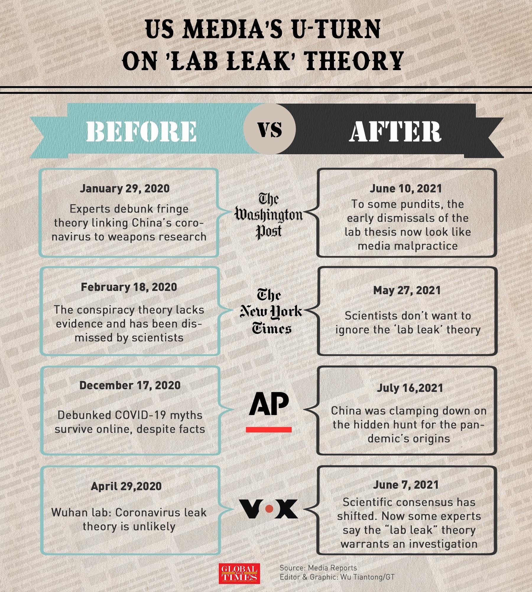 The tracing of COVID-19 origins is supposed to be a task for scientists. Yet Western media have never stopped hyping speculations and smears against China. Granted, some of them, including mainstream US media outlets, remained cautious with a disapproving view on the "lab leak" theory in 2020. Yet their stance took a U-turn by clamoring how credible a "lab leak" from Wuhan could be.