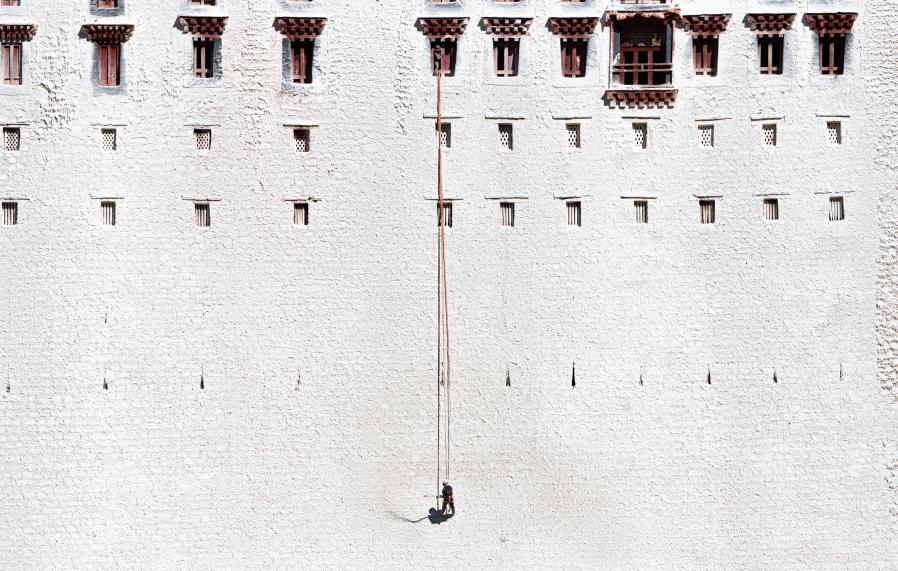 A worker paints the wall of the Potala Palace during an annual renovation of the ancient architectural complex in Lhasa, capital of southwest China's Tibet Autonomous Region, Oct. 28, 2020. (Xinhua/Purbu Zhaxi)