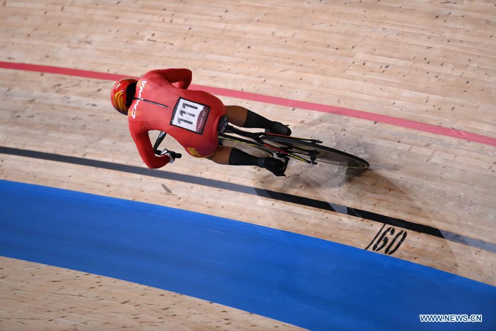 Zhong Tianshi of China competes during Cycling Track Women's team sprint final at Tokyo 2020 Olympic Games, in Izu, Japan, Aug. 2, 2021. (Xinhua/Zhang Hongxiang)