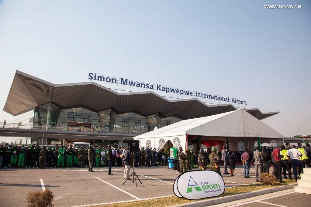 Photo taken on Aug. 5, 2021 shows the exterior of the new Simon Mwansa Kapwepwe International Airport in Ndola, Copperbelt Province of Zambia. Zambia on Thursday commissioned a new international airport financed by China, with President Edgar Lungu expressing gratitude to the Chinese side for financing the construction of the airport. (Xinhua/Zhao Yupeng)
