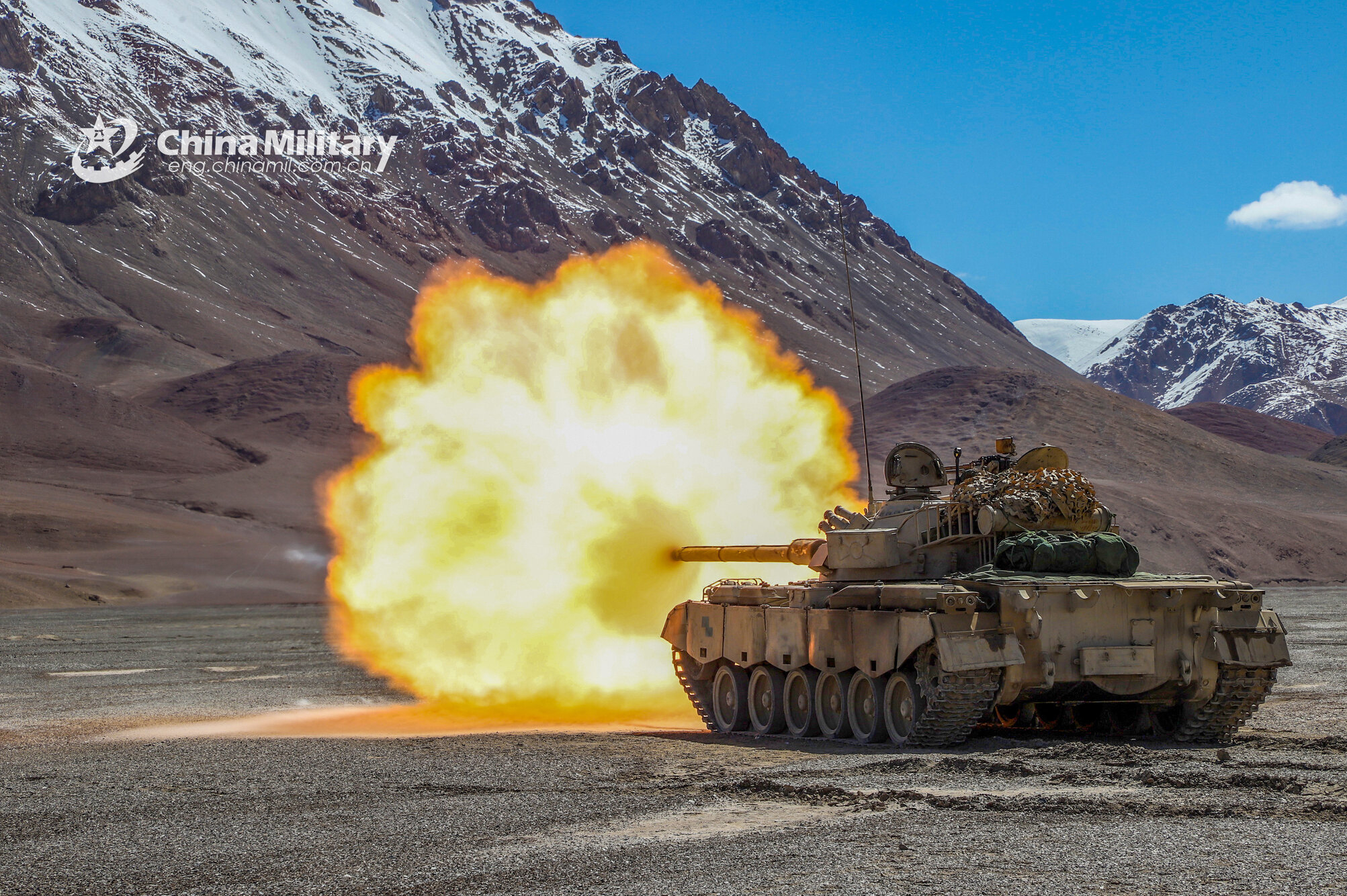 A main battle tank attached to a tank detachment with a PLA Army regiment fires its main gun at a simulated target during a recent live-fire training exercise in Gobi desert. (eng.chinamil.com.cn/Photo by Shi Jinguang)