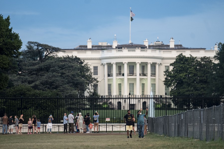 Tourists are seen near the White House in Washington, D.C., the United States, July 26, 2021. (Xinhua/Liu Jie)