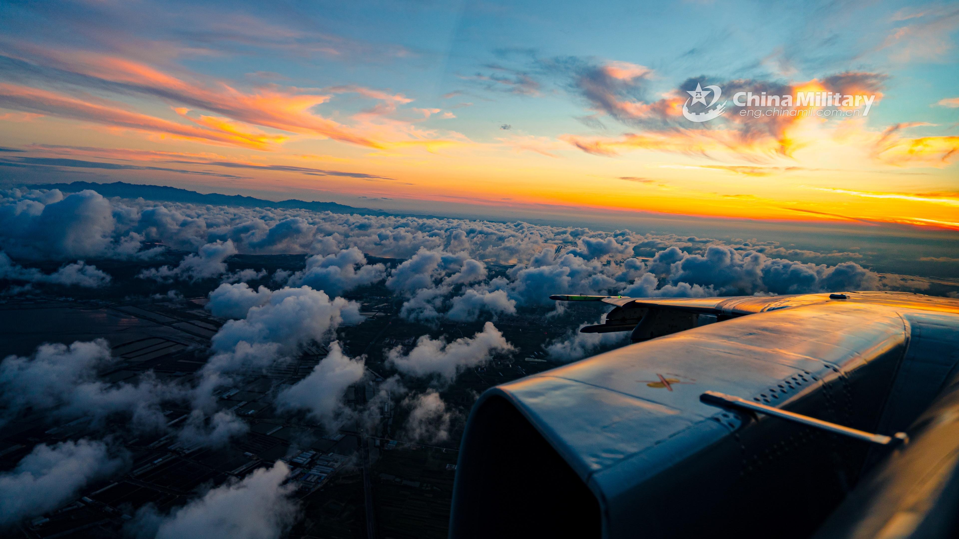 A fighter bomber attached to a naval aviation brigade under the PLA Northern Theater Command pierces into the stratosphere through clouds and mist during a round-the-clock flight training exercise in late July. (eng.chinamil.com.cn/Photo by Li Mingxi and Liu Xuhong)
