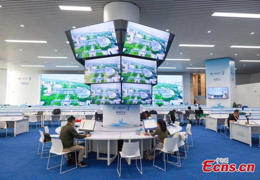 Journalists work at the media center of the 7th CIIE in Shanghai, Nov. 4, 2024. (Photo: China News Service/Jia Tianyong)