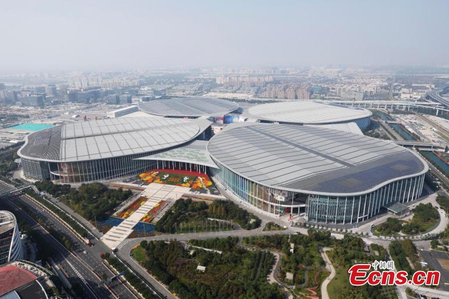 Aerial view of the National Exhibition and Convention Center (Shanghai), the main venue for the 7th China International Import Expo (CIIE), in Shanghai, Nov. 4, 2024. (Photo: China News Service/Yin Liqin)