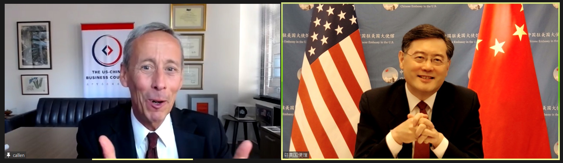 On Friday, Chinese Ambassador to the US Qin Gang had a virtual meeting with Craig Allen, President of the US-China Business Council (USCBC), according to the website of the Chinese Embassy in the US.