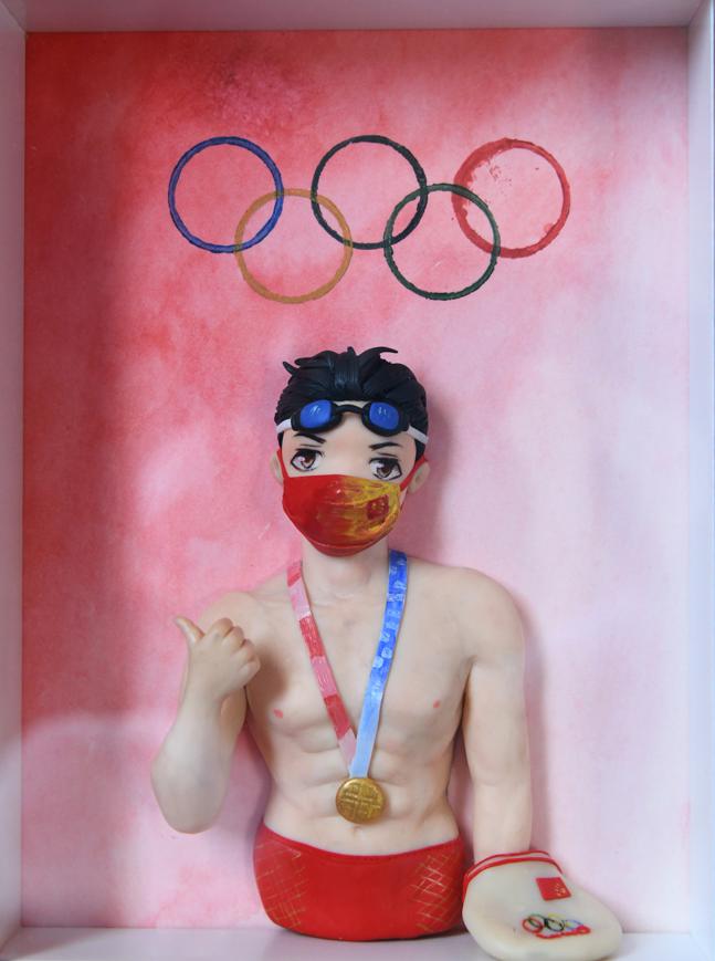 This polymer clay sculpture portrays Wang Shun, who won the men's 200m individual medley at the Tokyo 2020 Games. [Kou Ning/For chinadaily.com.cn]