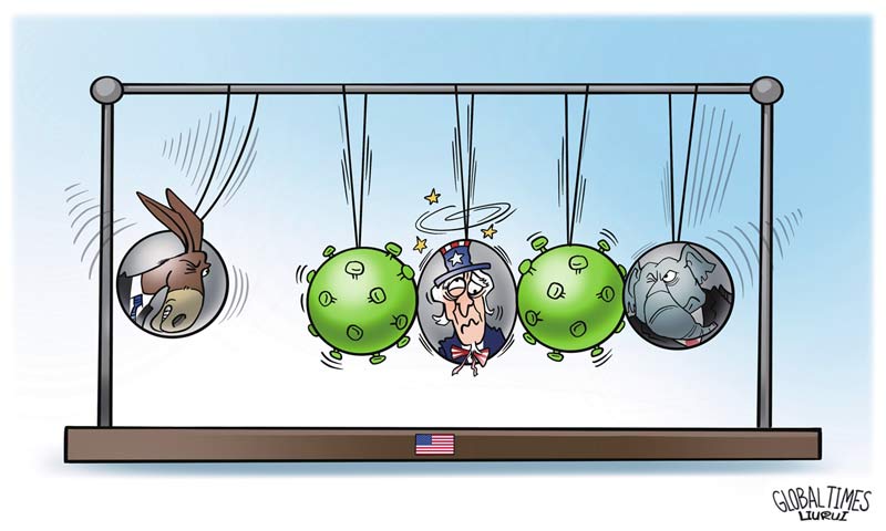 This can explain the widespread and bizarre political farce that has taken place amid the pandemic. To distance themselves from the federal capital, some politicians have opted to flout scientific and medical advice by lifting containment measures in the middle of the pandemic. Some who have indulged in factionalism take every opportunity to run counter to the orders issued by the opposite party. "U.S. politicians are irresponsibly insouciant about the raging pandemic since their poor performance has only a slight impact on their own political interests," said Sun Chenghao, an assistant researcher at the Center for International Security and Strategy, Tsinghua University.