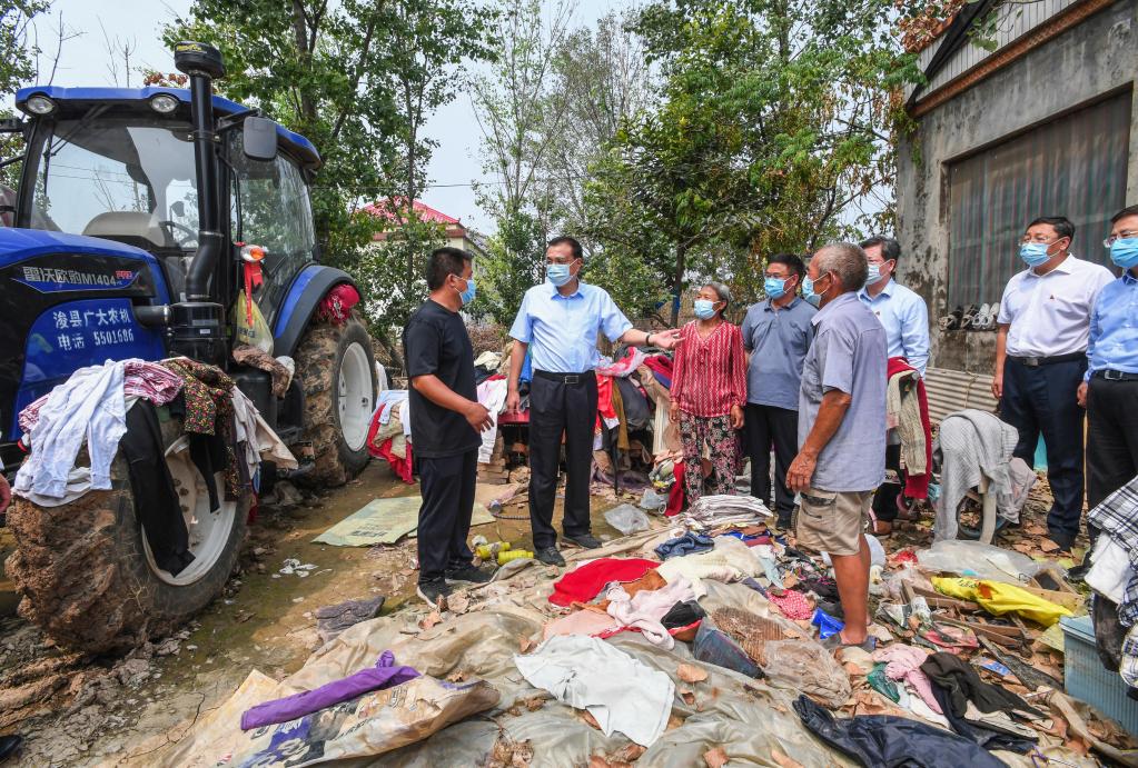 Chinese Premier Li Keqiang, also a member of the Standing Committee of the Political Bureau of the Communist Party of China Central Committee, visits flood-affected residents at Yuanzhuang Village of Hebi City, central China's Henan Province, Aug. 18, 2021. Li inspected the flood-hit Henan Province from Wednesday to Thursday. (Xinhua/Rao Aimin)