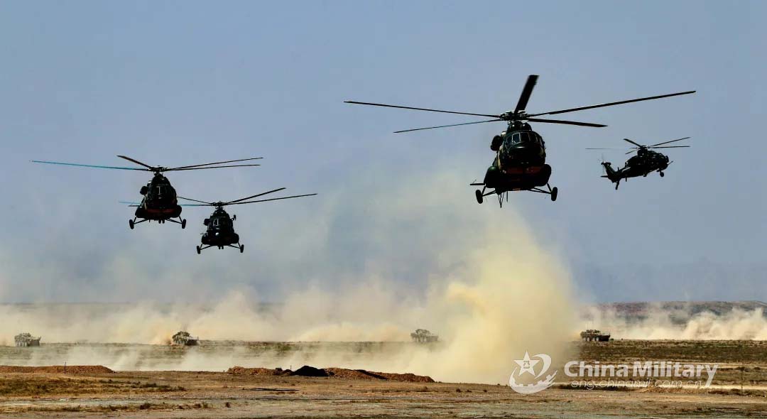 The armed helicopters and the assault vehicles "Lynx" coordinated in the defense penetration operations during the China-Russia joint military exercise ZAPAD/INTERACTION-2021 at a training base of the PLA Army in Qingtongxia City of West China's Ningxia Hui Autonomous Region from August 9 to 13, 2021. (eng.chinamil.com.cn/Photo by Wang Weidong)