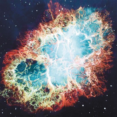 Photo shows Chen Yinghua’s embroidery work in the image of the Crab Nebula. (Photo courtesy of Chen Yinghua)