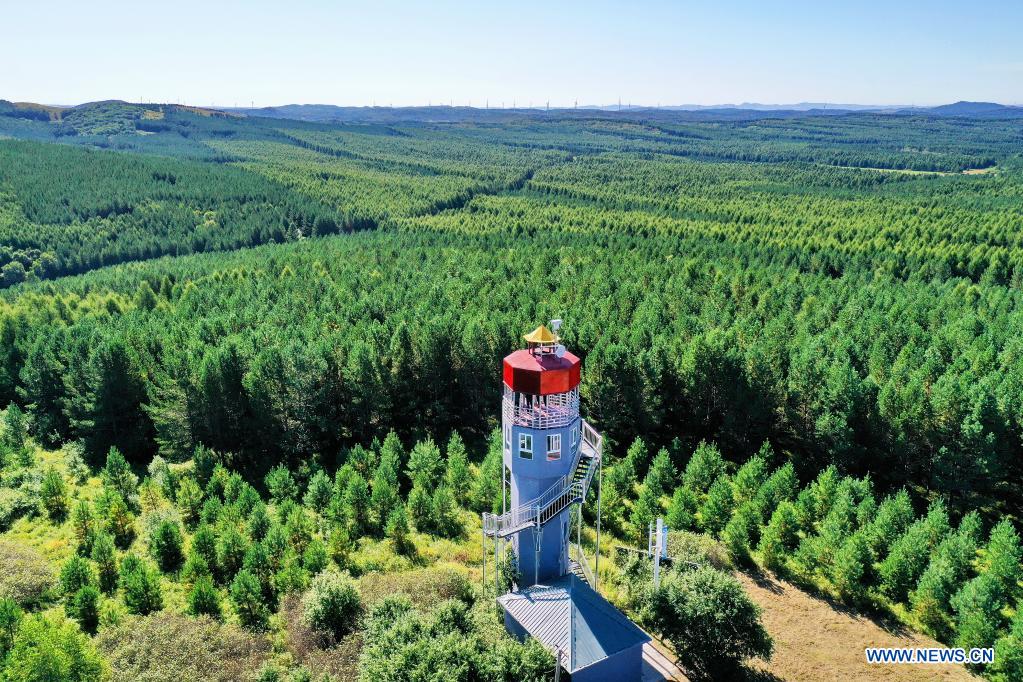 Aerial photo taken on Aug. 23, 2021 shows the scenery of Saihanba forest farm in north China's Hebei Province. (Xinhua/Mu Yu)
