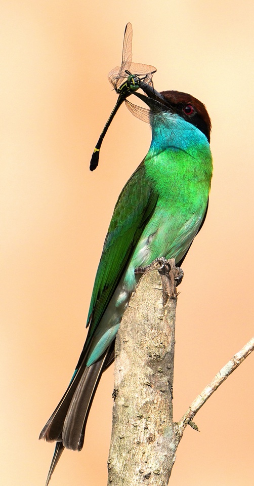 | The diet of blue-throated bee-eaters consists mostly of bees. They sometimes eat other insects, too. (Photo/Li Guochao) |