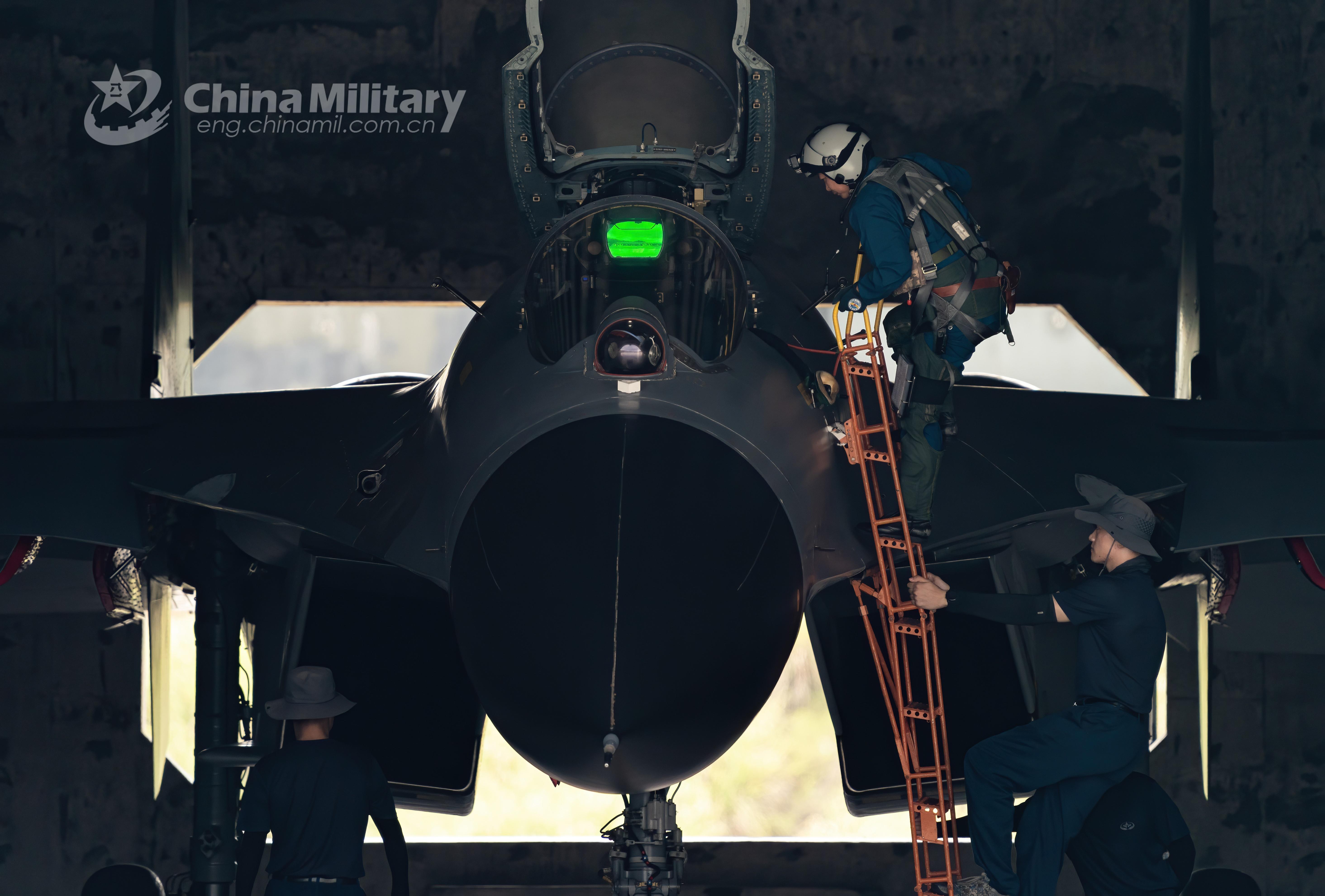 A pilot assigned to an aviation brigade of the air force under the PLA Eastern Theater Command climbs into the cockpit of his fighter jet prior to a round-the-clock fight training exercise on August 24, 2021. (eng.chinamil.com.cn/Photo by Zhang Shu)
